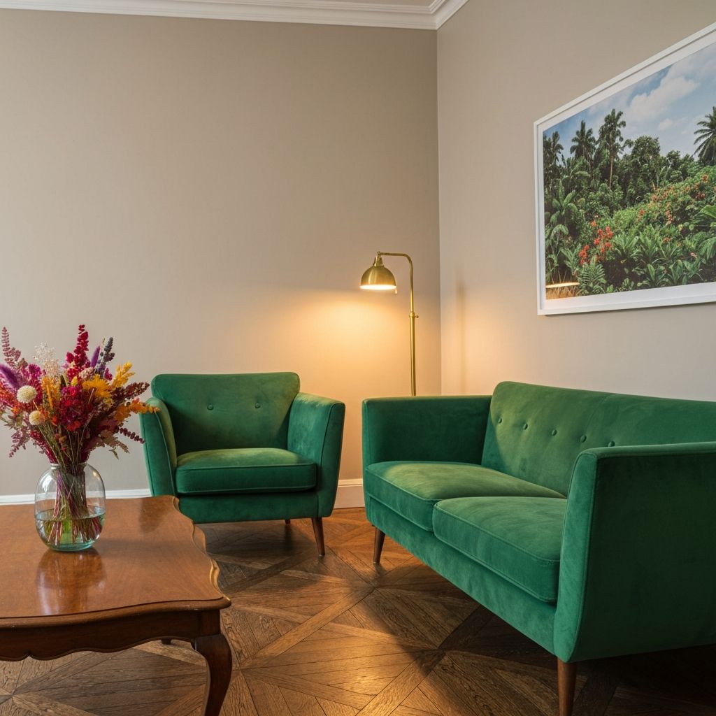 "Mid-century modern meets contemporary comfort in this living room restoration. Each piece has been carefully selected to honor the home's 1960s architecture..."